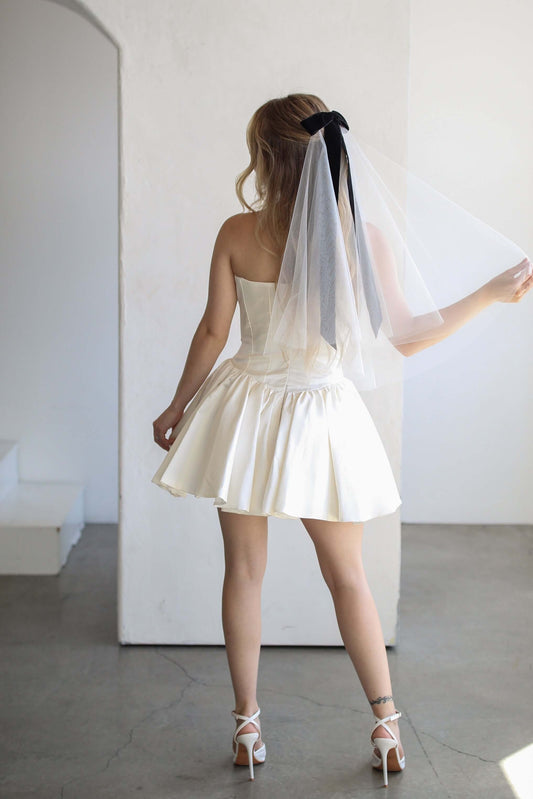 Double Layer Tulle Veil w/ Black Velvet Bow
