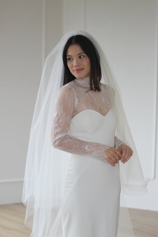Double Layer Tulle Veil w/ Black Velvet Bow