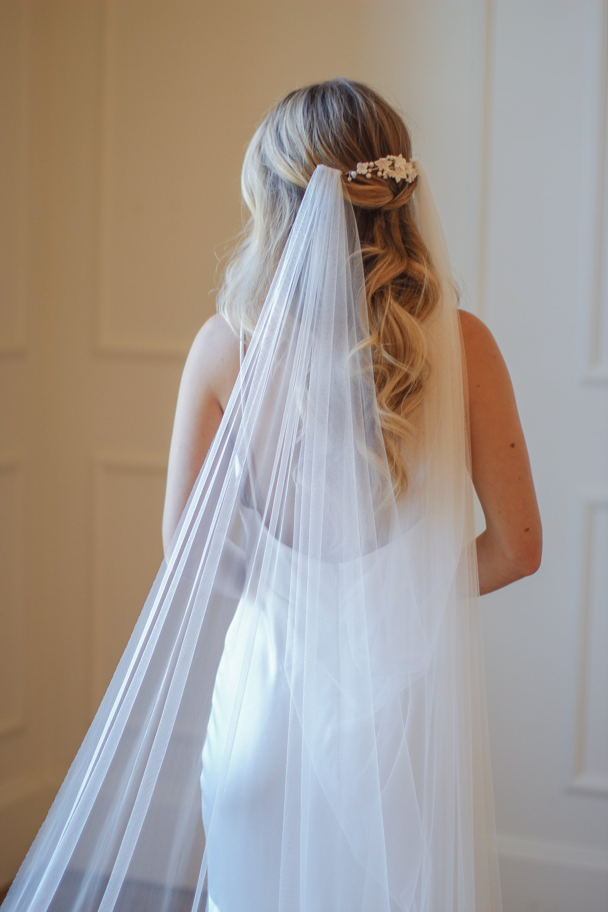 Before purchasing your veil, feel free to send us a message as we are happy to provide suggestions for what style and color will match your dress the best!