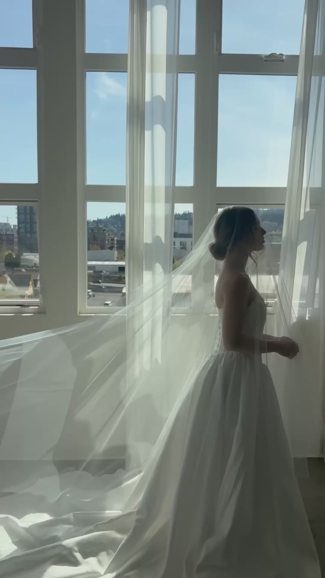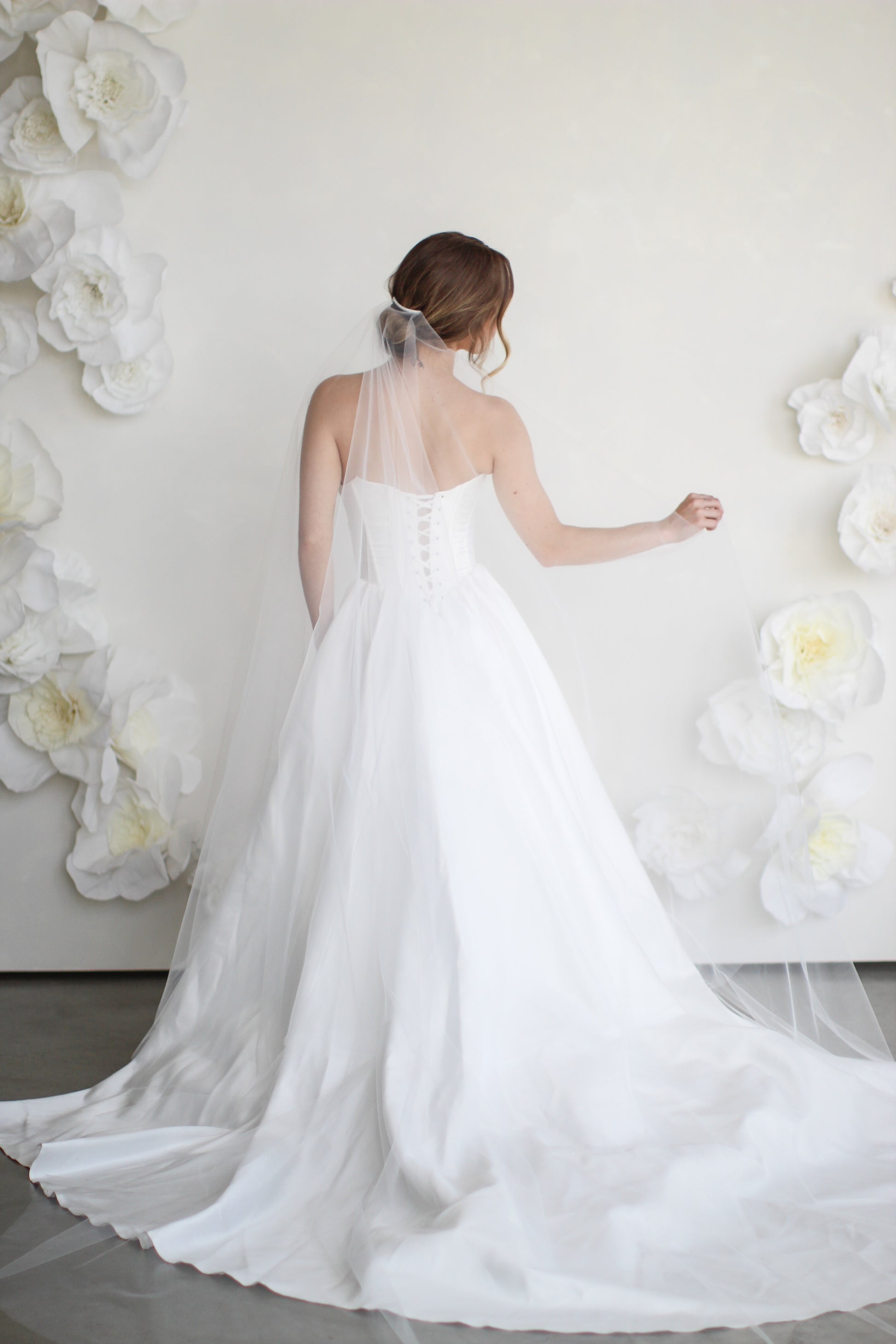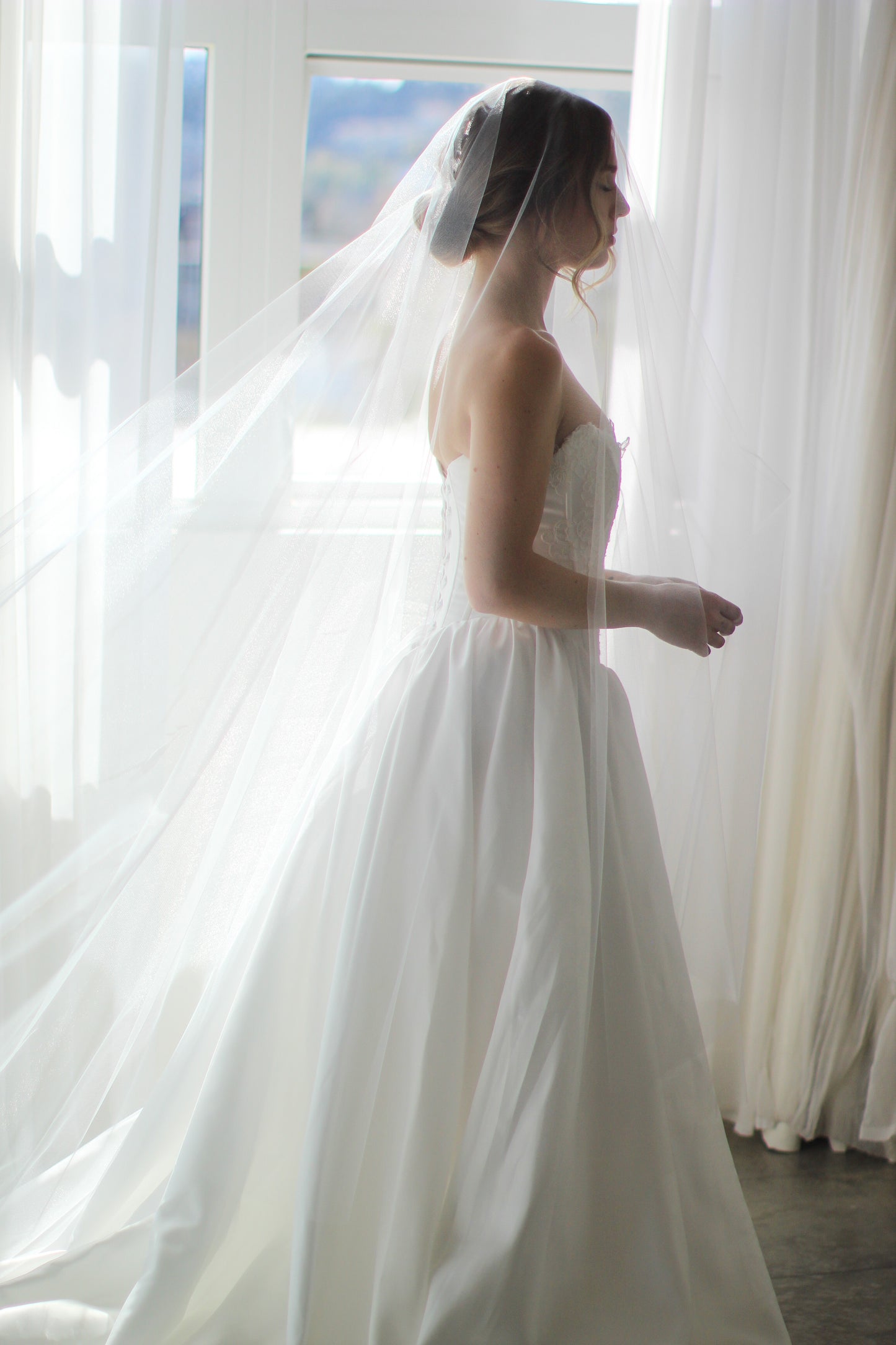 Before purchasing your veil, feel free to send us a message as we are happy to provide suggestions for what style and color will match your dress the best!