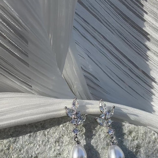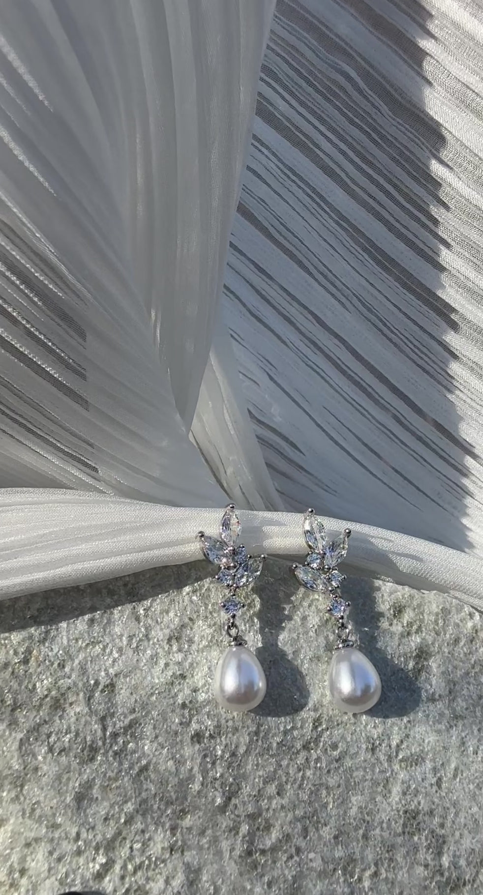 Bring an elevated touch of sparkle and sophistication to your wedding with these stunning crystal cluster pearl drop earrings. Featuring a shimmering cluster of crystals that catches the light beautifully, these earrings cascade into a single faux teardrop shaped pearl, creating a refined, radiant look with every movement.