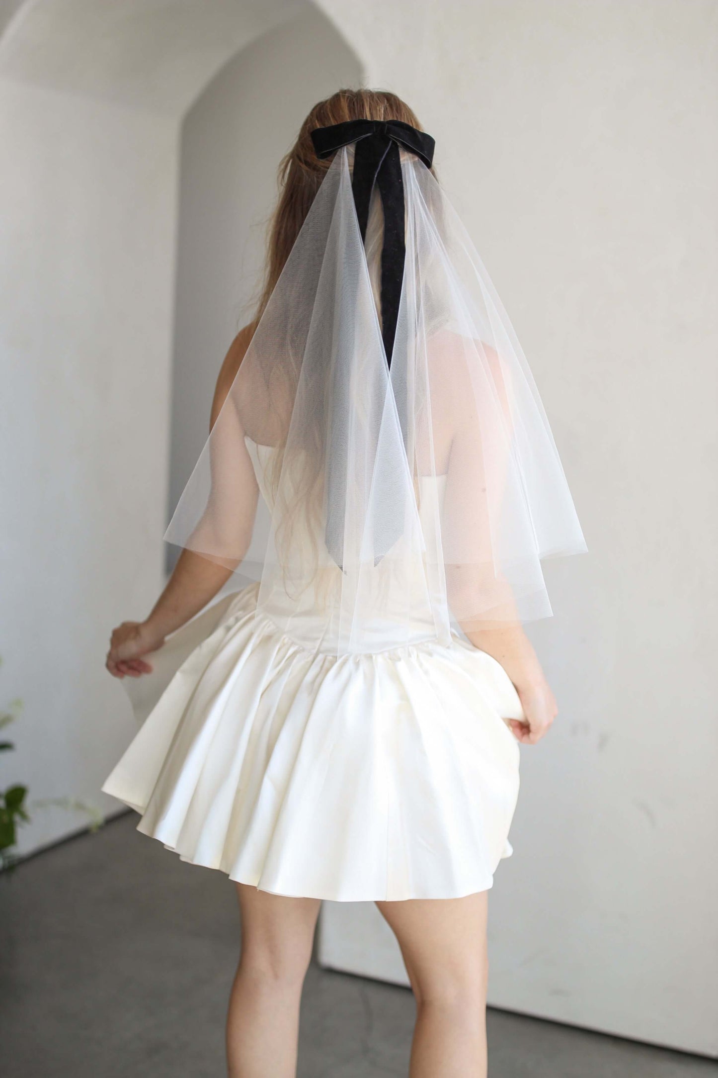 Double Layer Tulle Veil w/ Black Velvet Bow