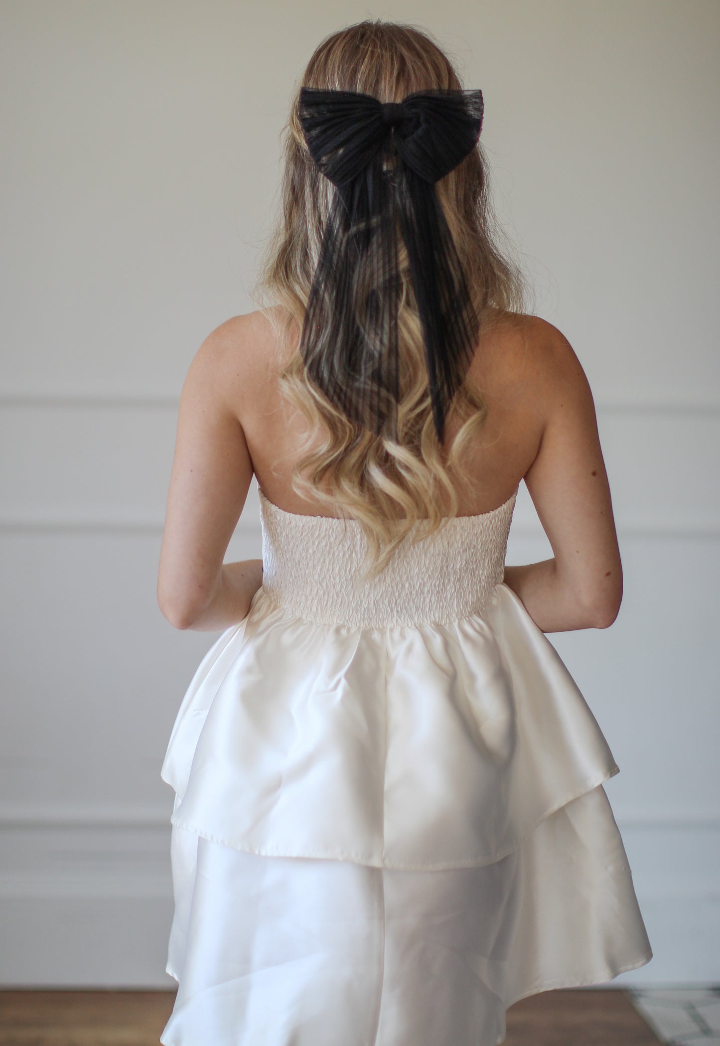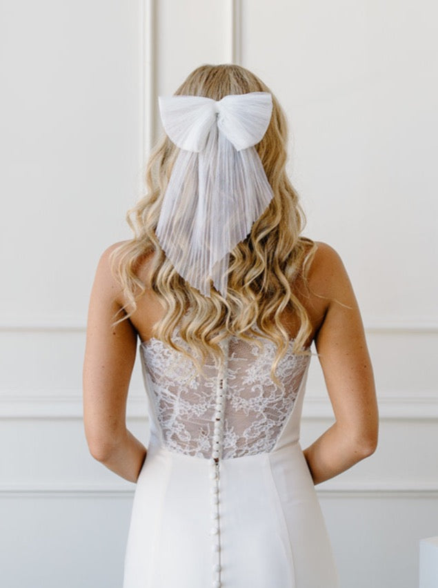 Before purchasing your veil, feel free to send us a message as we are happy to provide suggestions for what style and color will match your dress the best!