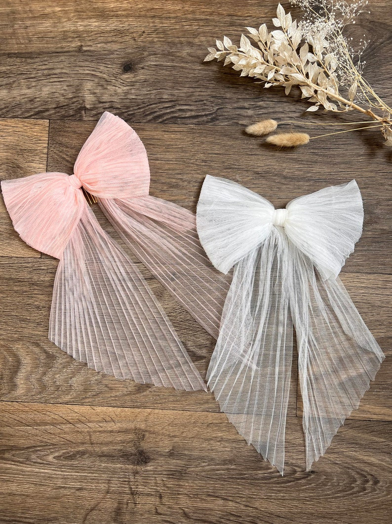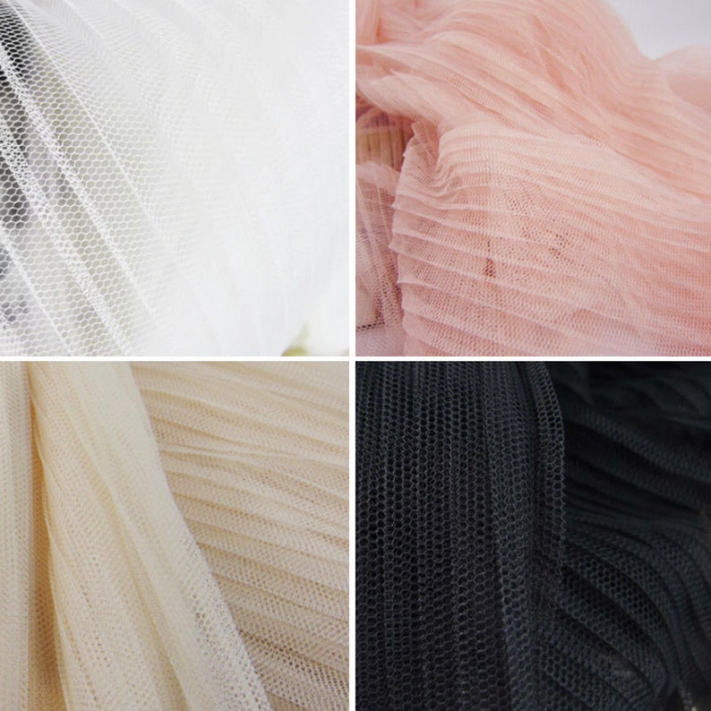 Fabric: pleated bridal net available in light ivory or pink, tan or black.